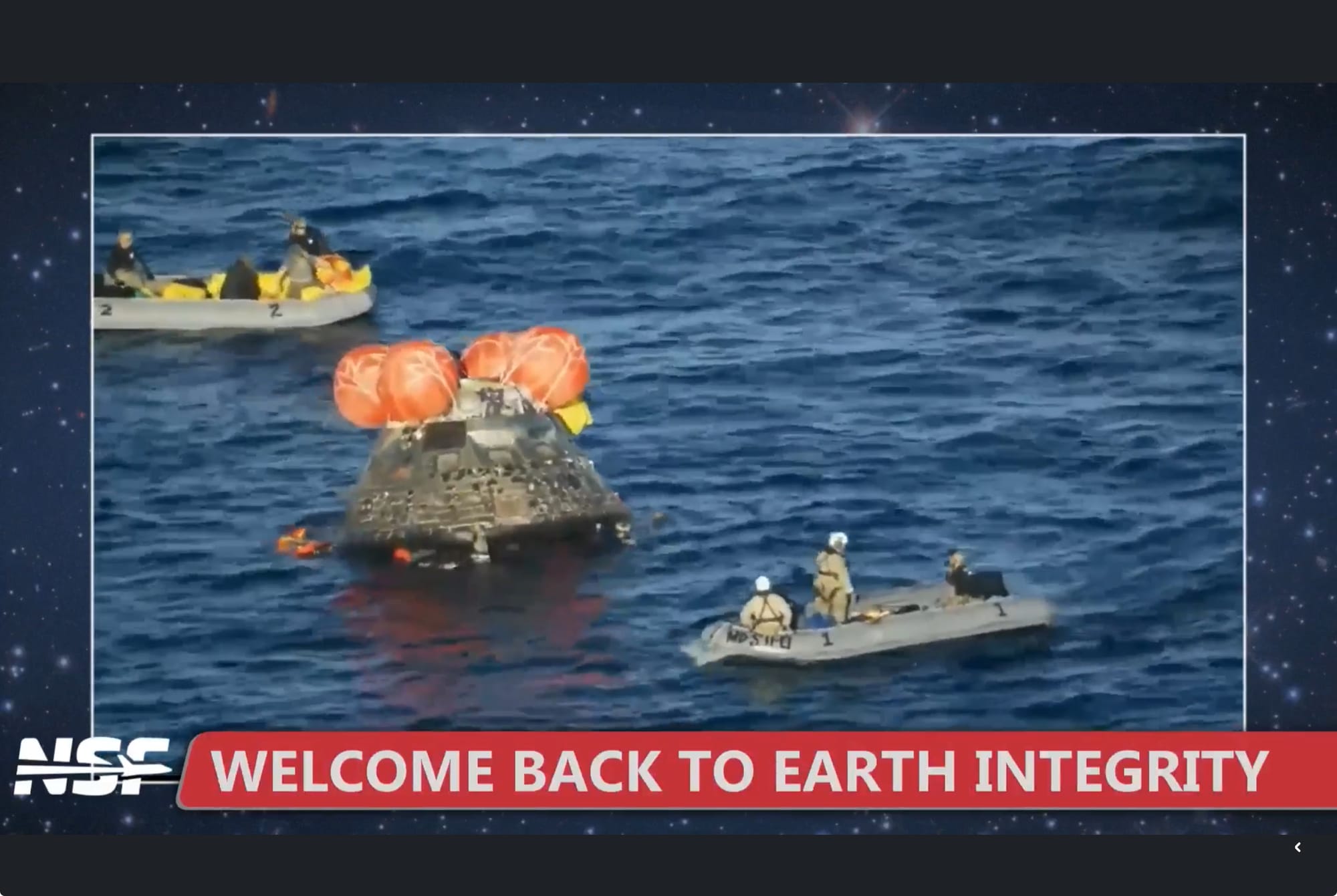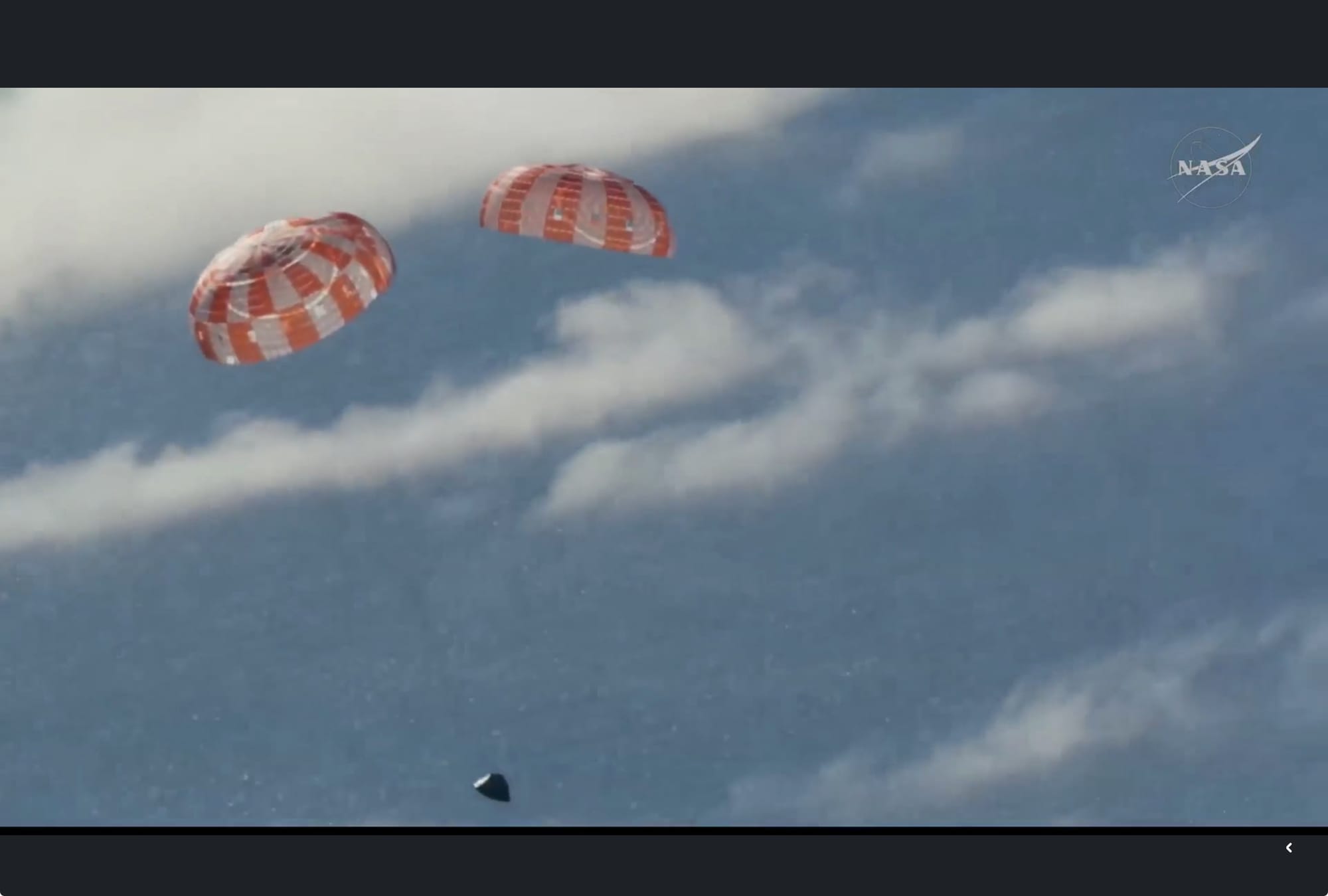 Tras pasar el punto más crítico de la reentrada, Orión se despojó de su módulo de servicio y se preparó para el “toque” final.