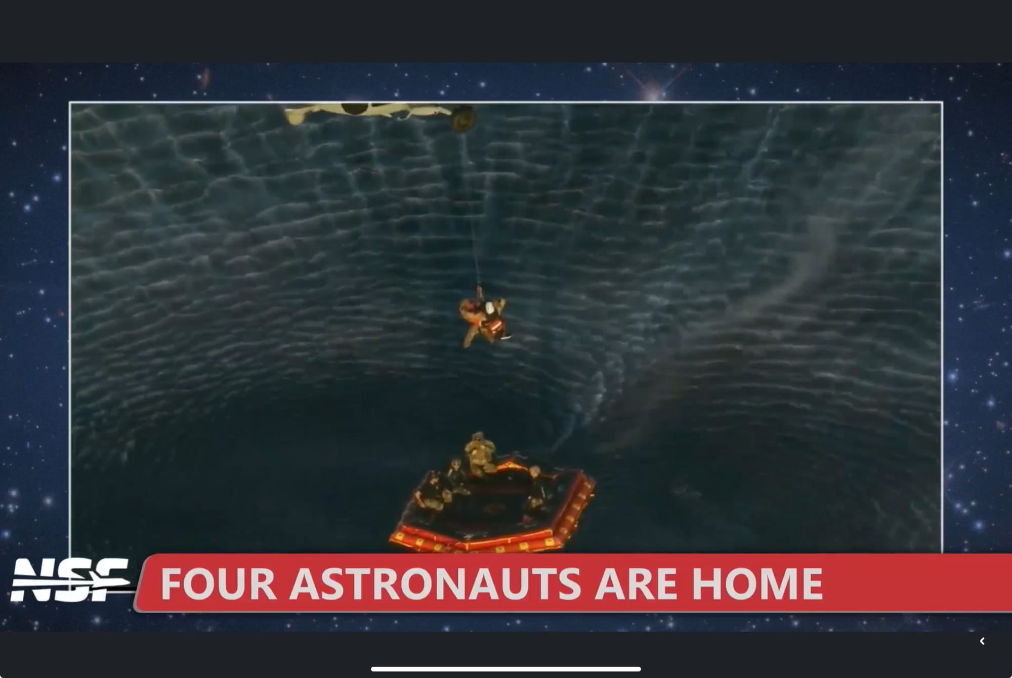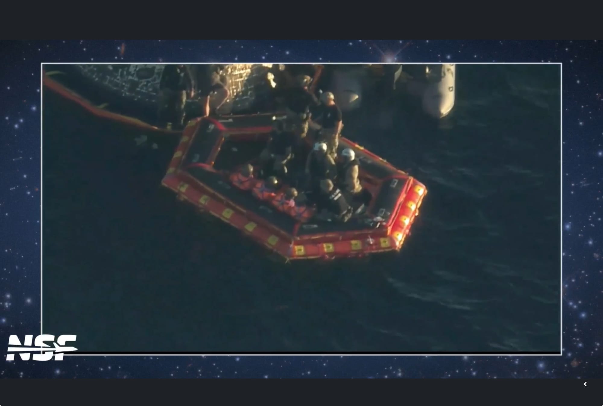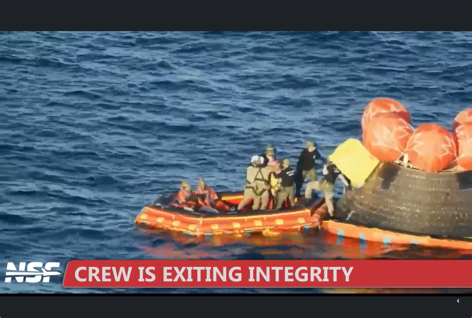 En cuestión de minutos, botes rápidos rodearon la cápsula flotante y comenzó el rescate. Los equipos se acercaron a la nave, verificaron su estado y, con todo en orden, sacaron a los cuatro astronautas: Reid Wiseman, Victor Glover y Christina Koch, de la NASA, y Jeremy Hansen, de la Agencia Espacial Canadiense.