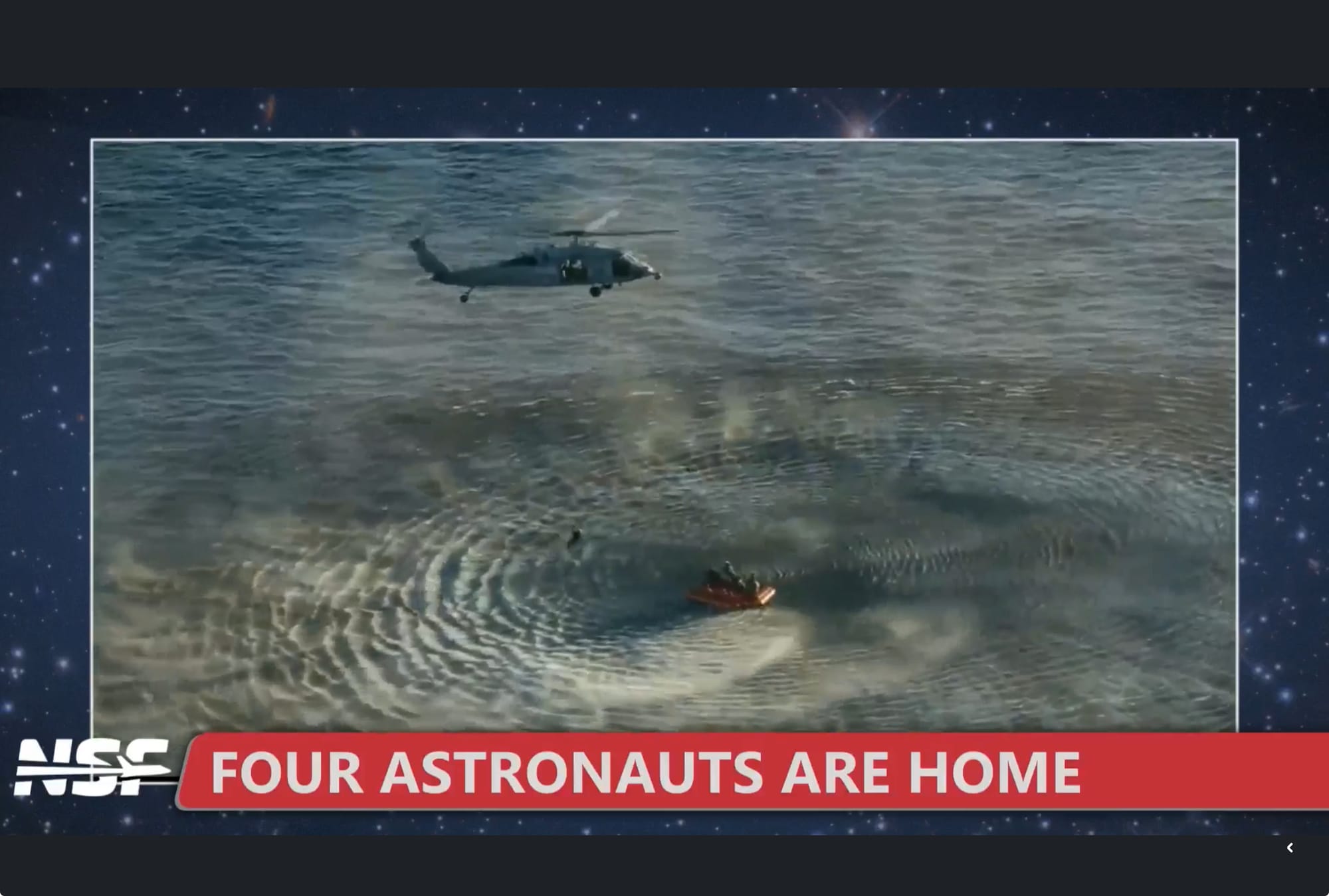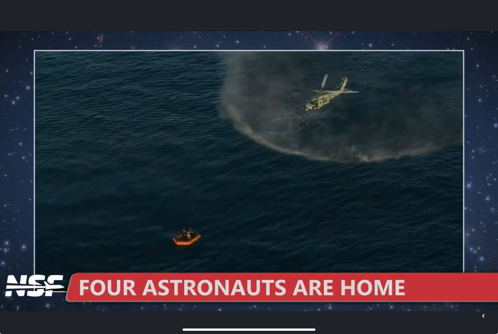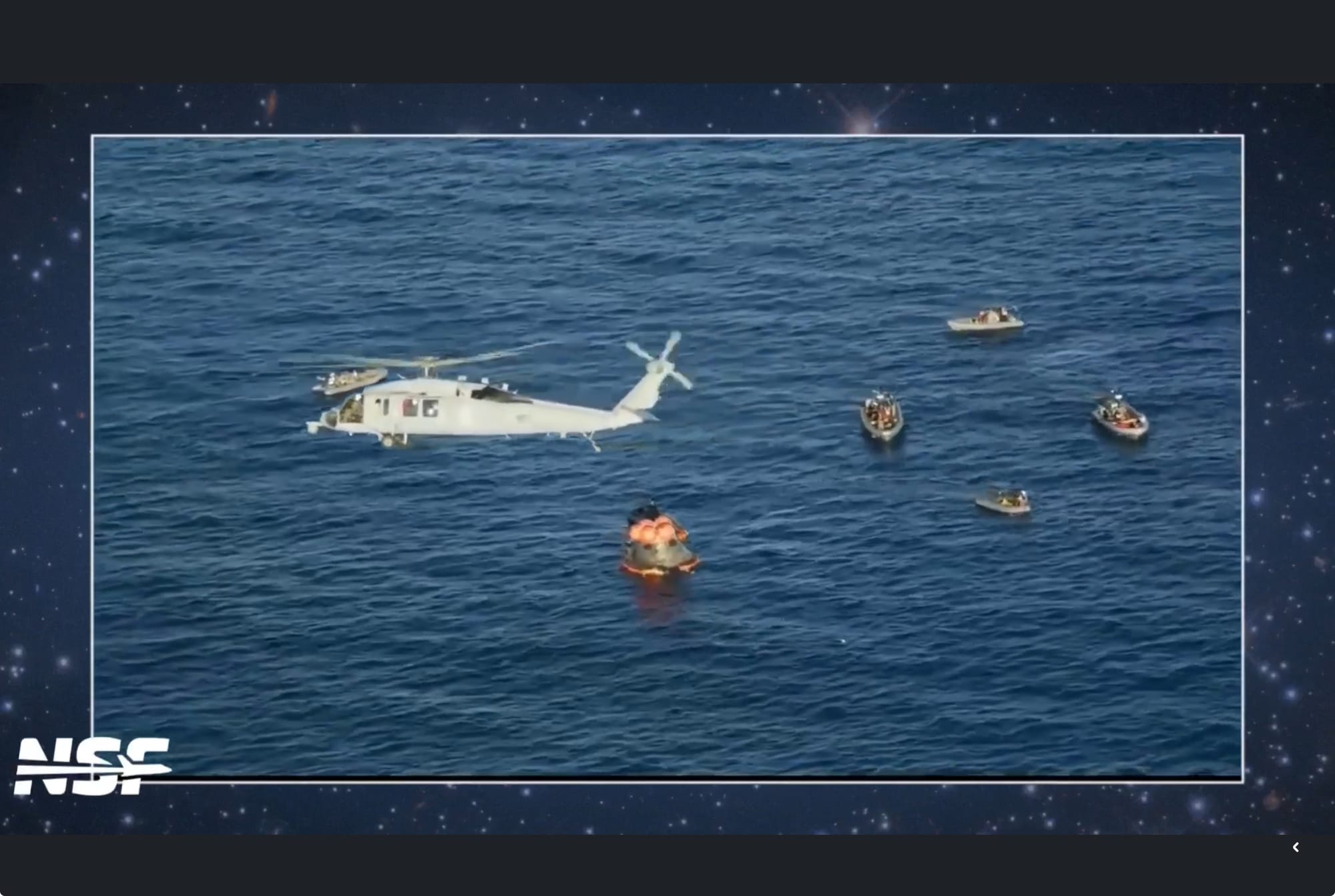 La cápsula descendió suavemente hasta tocar el agua a unos 32 kilómetros por hora, justo en el área prevista frente a la costa de San Diego, donde la había esperado una flota de buques de la NASA y la Armada estadounidense.