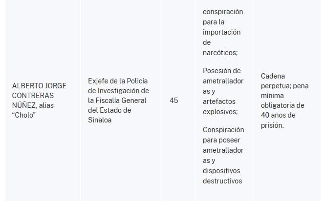 "Según las acusaciones, los acusados han estado estrechamente vinculados a la facción del Cártel dirigida por los hijos de Joaquín Archivaldo Guzmán Loera, alias “El Chapo”, el notorio exlíder del Cártel, conocidos colectivamente como los “Chapitos”.